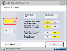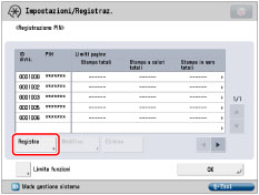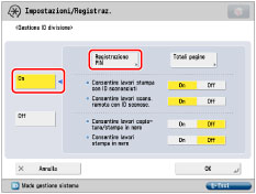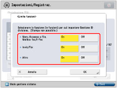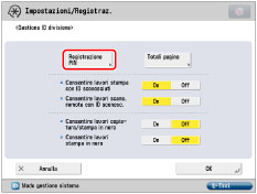 Se Gestione ID divisione è stata attivata tramite il Copy Card Reader-F1, non sarà possibile registrare/eliminare gli ID divisione.
