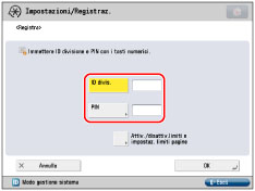 .Se non si imposta un PIN, si può utilizzare la macchina digitando solo l'ID divisione.