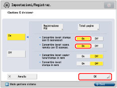 Le impostazioni <Consentire lavori stampa con ID sconosciuti> e <Consentire lavori scans. remota con ID sconosc.> vengono attivate solo quando la macchina è dotata delle funzioni Stampa e funzione Scansione remota.