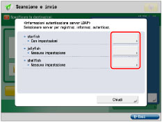 Utilizza le informazioni di autenticazione impostate in [Registrazione server LDAP]. (Vedere "Registrazione di un server LDAP".) Non sono richieste ulteriori impostazioni per ciascun utente.