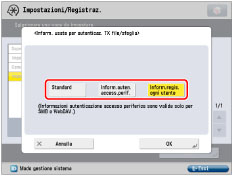 Utilizza le informazioni di autenticazione del server di file impostate nella macchina. (Vedere "Registrazione di un indirizzo di file server".) Non sono richieste ulteriori impostazioni per ciascun utente.