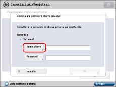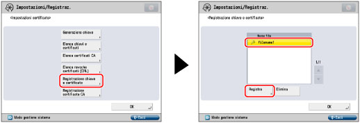 Premere [Registrazione chiave e certificato] → selezionare il file da registrare → premere [Registra].