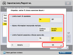 Selezionare [Impostazioni funzione] → [Comuni] → [Impostazioni operative blocco scans. docum.].