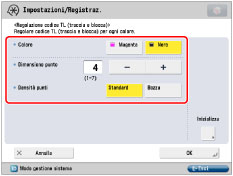 Selezionare [-] o [+] per impostare la dimensione dei punti.
