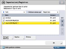 Quando si registrano le impostazioni per il tipo di carta personalizzato, accertarsi di modificarne il nome. Non è possibile modificare le impostazioni dei tipi di carta predefeniti registrati nella macchina.