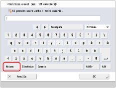 Premendo [Maiusc] sulla schermata con la tastiera, il successivo carattere immesso sarà maiuscolo. [Maiusc] viene rilasciato ogni volta che viene immesso un carattere, e i caratteri successivi saranno minuscoli.