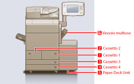 Se è presente una fonte di alimentazione contenente carta con lo stesso formato, tipo e colore, la macchina preleva automaticamente la carta da quella fonte di alimentazione e continua a stampare.