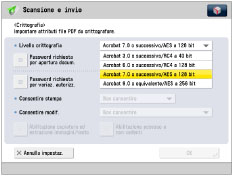 Durante la generazione di file PDF crittografati è possibile selezionare il livello di crittografia dalle seguenti opzioni: