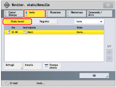 Annulla il lavoro selezionato. [Annulla] viene visualizzato quando si seleziona un lavoro. Premere [Annulla] → [Sì] per annullare il lavoro.