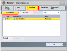 Visualizza informazioni dettagliate sul lavoro selezionato. Controllare le informazioni dettagliate → selezionare [OK] per tornare alla schermata Ricezione.
