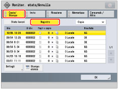 Visualizza informazioni dettagliate sul lavoro selezionato. Controllare le informazioni dettagliate → premere [OK] per tornare alla schermata Copia/Stampa.