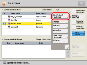 Se la macchina si spegne automaticamente nel momento specificato in [Timer settimanale arresto automatico] mentre è in corso la modifica dei job ticket, vengono modificati solo i job ticket che erano già stati elaborati prima dello spegnimento della macchina.