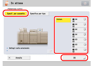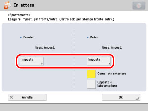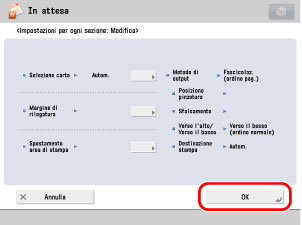 Se sono selezionati più intervalli di pagine e le impostazioni di ciascun intervallo sono diverse, viene visualizzato [Misti] per [Formato carta per stampa] e [Ogni sezione] o [Applic. impostaz. per ogni sezione] per le altre impostazioni.
