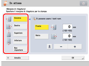 Se si immette un valore diverso da 0, è possibile passare dalla selezione di una larghezza dei margini positiva alla selezione di una larghezza dei margini negativa premendo [±].