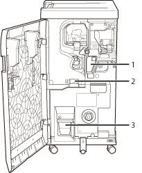 Estrarre il vassoio dei residui di foratura per rimuovere i residui di foratura. (Vedere "Rimozione dei residui di foratura (Puncher Unit-BG1/Puncher Unit-BH1)".)