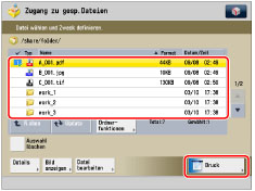 Sie können bis zu sechs Dateien gleichzeitig in einem Ordner wählen und drucken lassen. Sie können aber keine Dateien mit unterschiedlichen Dateiformaten zum gleichen Zeitpunkt auswählen.