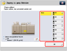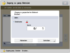abbrechen.)Um den nächsten Druckauftrag zu reservieren, berühren Sie die Taste [Schließen] → Führen Sie das Verfahren zum Reservieren eines Druckauftrags durch. (Vgl. Abschnitt "Reservieren von Jobs".)