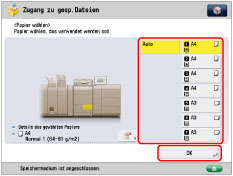 abbrechen.)Um den nächsten Druckauftrag zu reservieren, berühren Sie die Taste [Schließen] → Halten Sie sich an die Vorgehensweise für das Reservieren eines Druckauftrags. (Vgl. Abschnitt "Reservieren von Jobs".)