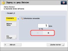 Berühren Sie die Tasten [Erste Seite] und [Letzte Seite] → Geben Sie die erste und die letzte zu löschende Seite mit [-] oder [+] an.