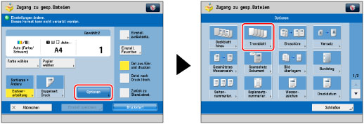 Wenn Sie <Deckblatt hinzu> und <Trennblatt> einstellen möchten, wählen Sie dafür dasselbe Papierformat.