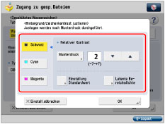 Der Musterdruck enthält den Hintergrundtext und den Hintergrund für jeden relativen Kontrastwert.