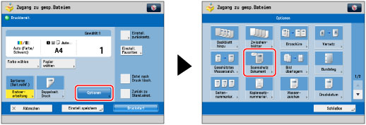 Berühren Sie nacheinander die Tasten [Optionen] → [Scanschutz Dokument].