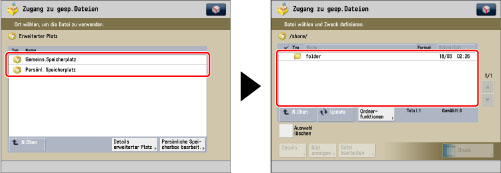 Berühren Sie nacheinander die Tasten [Zugang zu gesp.Dateien] → [Erweiterter Platz].