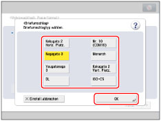 Wählen Sie das Briefumschlagformat, das den im Mehrzweckfach liegenden Briefumschlägen entspricht.