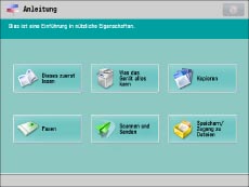 Dies ist das erste Display, das nach Berühren der Taste [Anleitung] angezeigt wird.