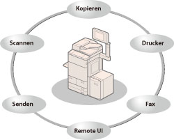 Der imageRUNNER ADVANCE C9280 PRO/C7280i/C7270i/C7260i bietet eine Vielzahl von Eingabe- und Ausgabemöglichkeiten, die Ihre Effizienz erheblich erhöhen. Dank seiner Ausstattung mit Funktionen, die allen Ansprüchen an die Verarbeitung von Dokumenten im digitalen Büro gerecht werden, ist der imageRUNNER ADVANCE C9280 PRO/C7280i/C7270i/C7260i ein herausragender Vertreter digitaler Multitasking-Farbsysteme.