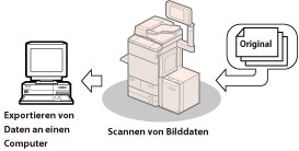 Mit der Netzwerk-Scanfunktion können Sie den imageRUNNER ADVANCE C9280 PRO/C7280i/C7270i/C7260i als herkömmlichen Scanner verwenden. Sie können Dokumente mit dem System einscannen und Daten in eine Anwendung auf Ihrem Computer einlesen. Sie können Bilder bis zum Format A3 mit 600 x 600 dpi scannen.