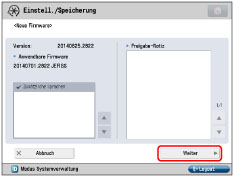 Berühren Sie nacheinander die Tasten [Firmware aktualisieren] → [Neue Firmware].