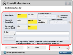 Definieren Sie die einzelnen Einstellungen → Berühren Sie die Taste [OK].