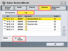 Wenn das Access Management System aktiviert ist, wenn ein angemeldeter, allgemeiner Anwender einen Speicherlogbericht druckt, werden für die Aufträge, die von anderen Anwendern ausgeführt wurden, "***" in die Spalte Speichern unter gedruckt. Melden Sie sich als Administrator an, um die Informationen in der Spalte Speichern unter zu sehen.