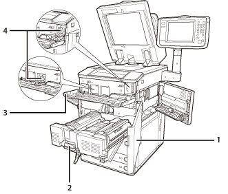 Öffnen Sie diese Abdeckung zum Austauschen von Tonerpatronen.