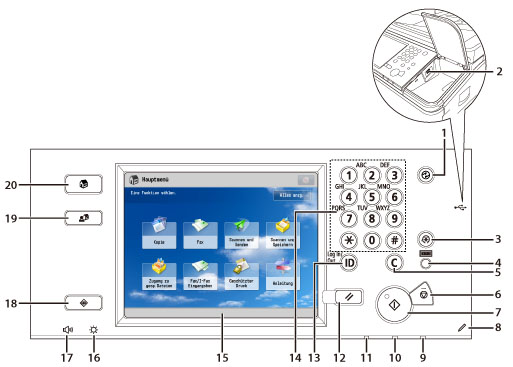 Hier finden Sie Tasten, Anzeigen und das Sensordisplay, auf dem Sie programmieren. (Vgl. Abschnitt "Bedienfeld: Aufbau und Funktionen".)