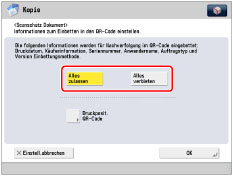 Vor der Einstellung dieser Funktion sollte der Administrator den QR-Code für den Modus Scanschutz einstellen. (Vgl. Abschnitt "Auswählen des Codes für Scanschutz Dokument (TL-Code/QR-Code)".)
