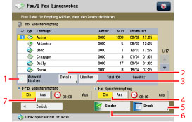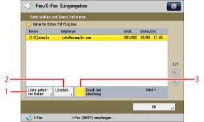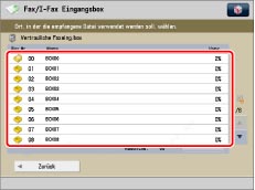 Wir empfehlen, nicht benötigte Dateien und Bilddaten aus der Fax-/I-Fax Eingangsbox zu löschen, damit Platz für die Speicherung weiterer Dateien verfügbar wird.