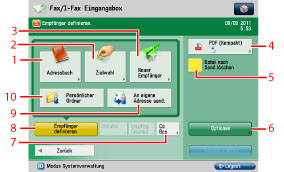 Berühren Sie diese Taste, um die Methoden zum Angeben von Empfängern oder die Empfängerliste anzuzeigen.