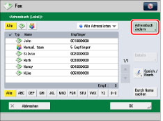 [Adressbuch ändern] wird nur angezeigt, wenn Sie sowohl das Remote-Adressbuch als auch den LDAP Server speichern. Wenn nur der LDAP Server auf dem System gespeichert wird, wird [An LDAP-Server] angezeigt.