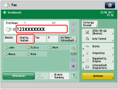 Berühren Sie die Taste [Fax] → Geben Sie die gewünschten Empfänger an.
