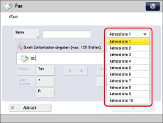 Berühren Sie die Auswahlliste → Wählen Sie ein Adressliste (Adressliste 1 bis 10) aus.