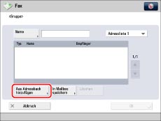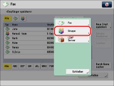 Wenn Sie eine Gruppenadresse speichern, können Sie nur Adressen auswählen und speichern, die in derselben Adressliste registriert sind.