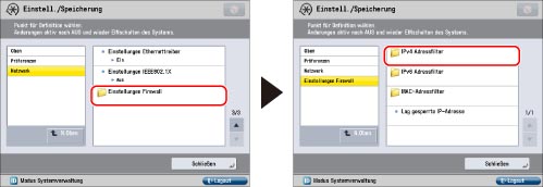 Wenn die Verwendung eines Protokolls oder einer Druckanwendung auf dem System nicht erlaubt ist, kann es/sie auch nicht verwendet werden, nachdem Einstellungen in [Einstellungen Firewall] verändert wurden. Konfigurieren Sie die Einstellungen für die Zulassung des Protokolls oder der Druckanwendung.