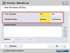 Wenn Sie unter [Präfixlänge] den Wert '0' eingeben, werden alle IPv4-Adressen festgelegt.