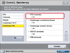 Berühren Sie [IPv6 verwenden] für [Einstellungen IPv6] → [Ein] → [OK].