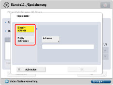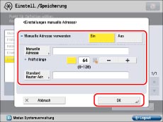 Wenn Sie eine manuelle Adresse verwenden möchten, berühren Sie [Ein] für <Manuelle Adresse verwenden>.