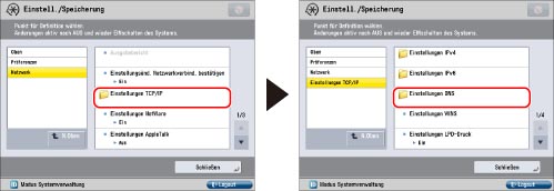 Berühren Sie [Einstellungen TCP/IP] → [Einstellungen DNS].