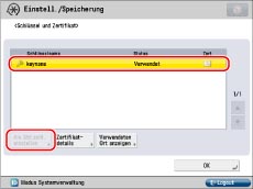Wählen Sie das Schlüsselpaar aus, das Sie für mit SSL verschlüsselte Kommunikation verwenden möchten → Berühren Sie [Als Std.schl. einstellen].