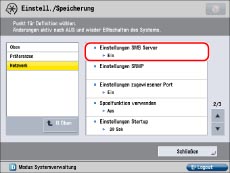 Berühren Sie [Präferenzen] → [Netzwerk] → [Einstellungen SMB-Server].